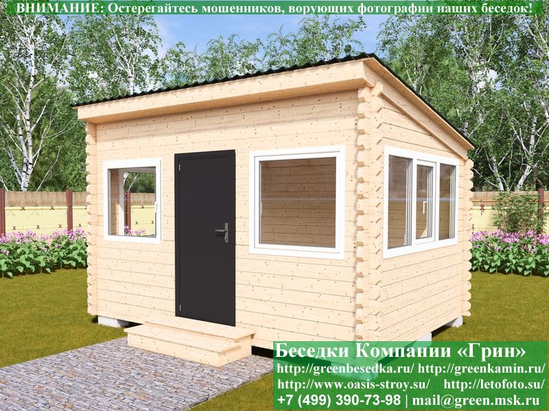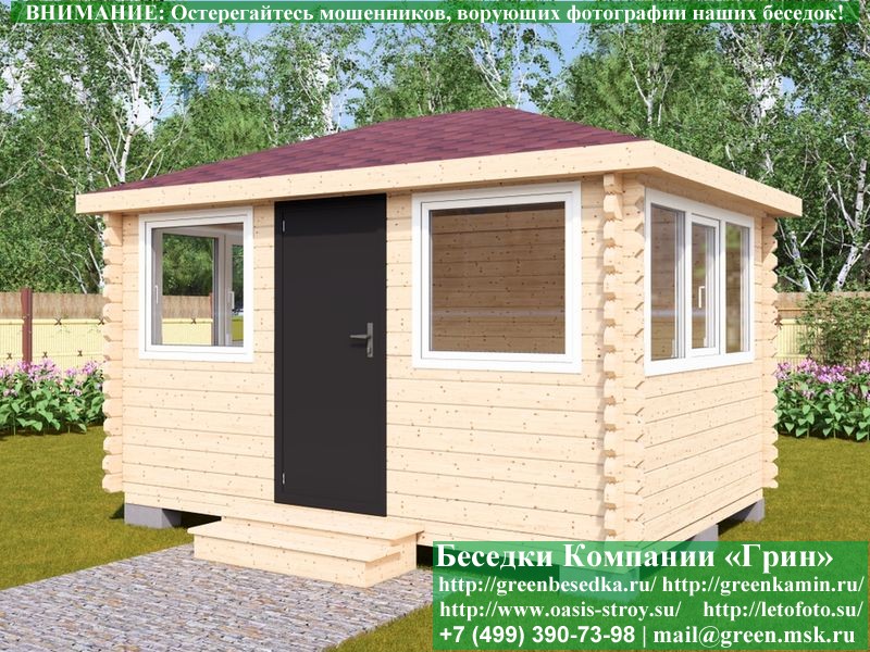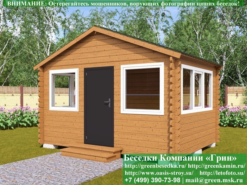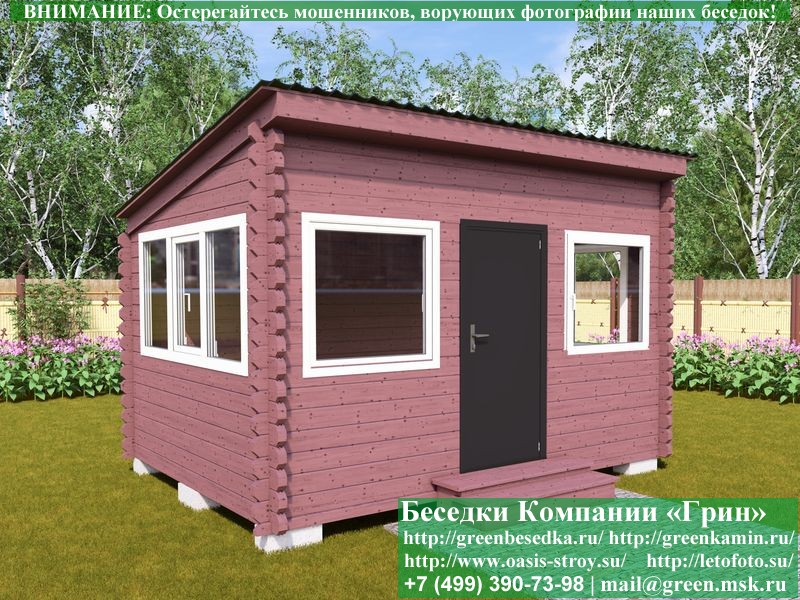Застекленная беседка из минибруса 3х4 метра изготавливается из хвойных пород дерева. При строительстве беседок используется сухое дерево камерной сушки. Стенки беседки изготавливаются из сухого профилированного бруса 45х145 и 60х145 мм. На пол кладется толстая сухая строганая доска 35 мм. В беседку устанавливаются однокамерные пластиковые окна фирмы "Века". Окна заказываются в Лемана-Про. Количество застекленных сторон и количество открывающихся окон обговаривается дополнительно. Устанавливается металлическая или алюминиевая дверь. Беседки изготавливаются с Односкатной, 2-х и 4-х скатной крышей. На крышу кладется Металлочерепица, Мягкая черепица или Профлист: Коричневых, Зеленых, Бордовых, Серых цветов. Срок изготовления и установки беседки на участке составляет 10-14 дней (срок изготовление пластиковых окон). Беседки поставляются в не крашеном виде. Возможна покраска беседок в цеху или полная обработка антисептиком. Дополнительно предлагаем установку в деревянные беседки с пластиковыми окнами недорогих безопасных быстровозводимых печей-барбекю, установка в течение дня, или более дорогих и сложных комплексов-барбекю и мангалов-барбекю из кирпича.
