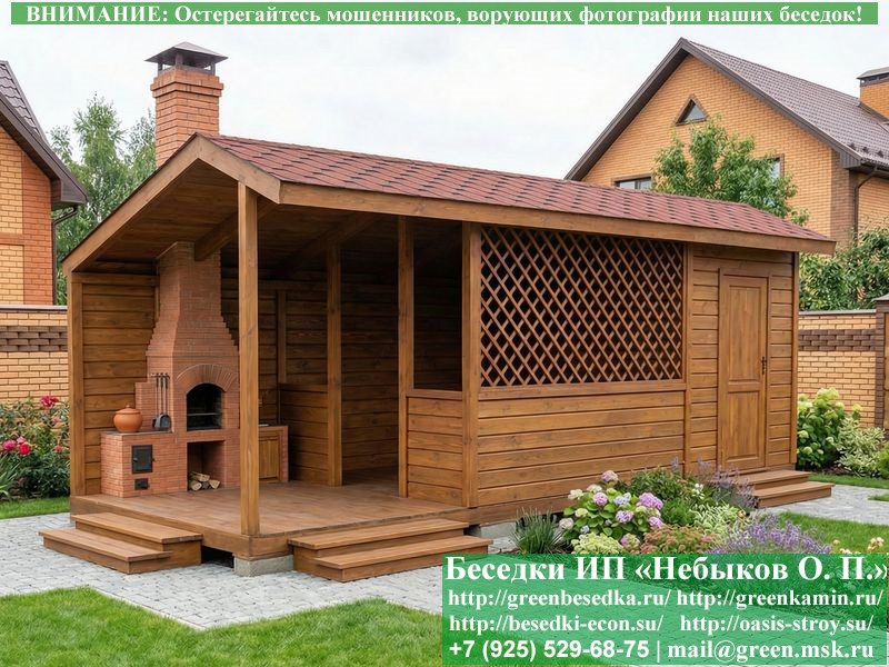 | На беседки предоставляется гарантия 1 год. Это полный сезон с большим перепадом температуры и различными погодными условиями. Гарантия распространяется на работы по установке беседок, веранд, бытовок, хозблоков и надежность конструкции. |