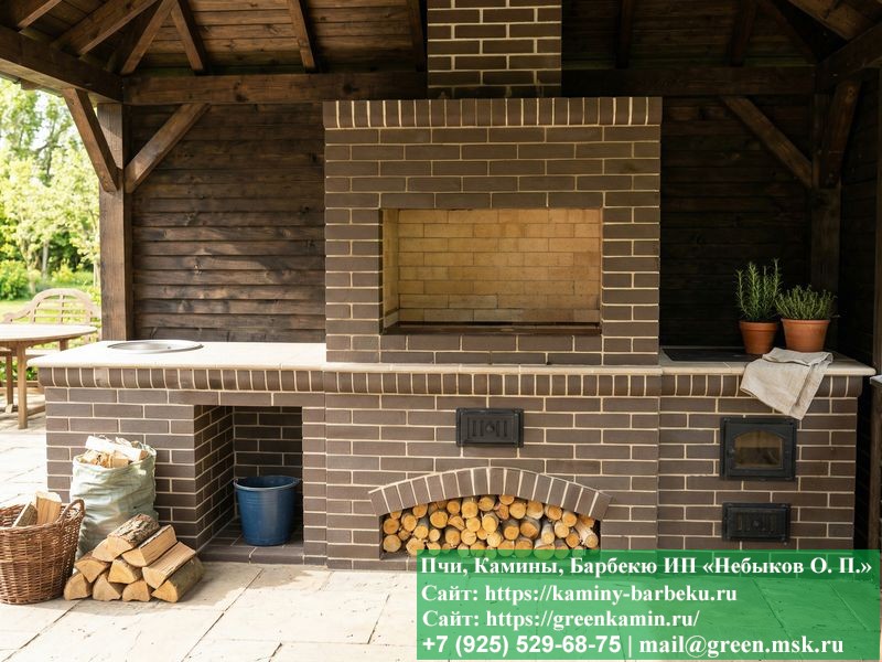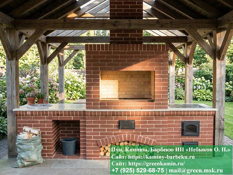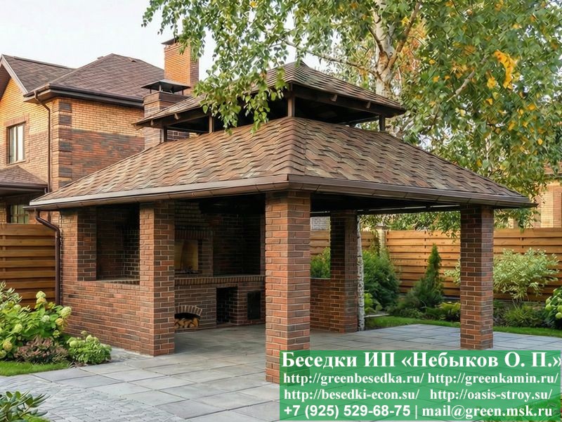Беседка Из Кирпича С Мангальной Зоной Барбекю. Вариант № 2