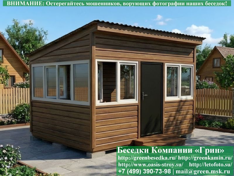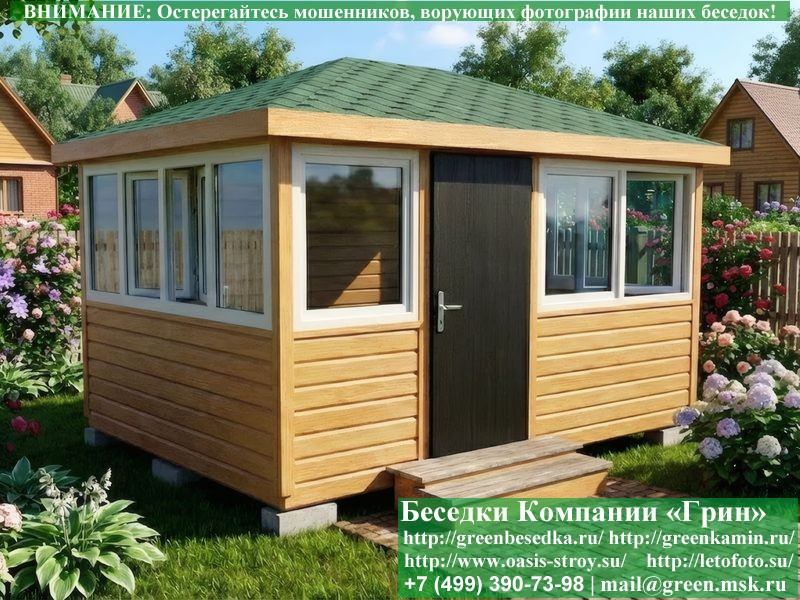 | Размеры беседки: | Длина: 4 мeтрa; Глубина: 3 мeтрa; Высота: 2.9 мeтрa; |