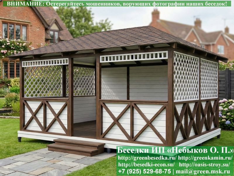 Летняя Беседка Для Дачи В Стиле 'Фахверк' 4х5