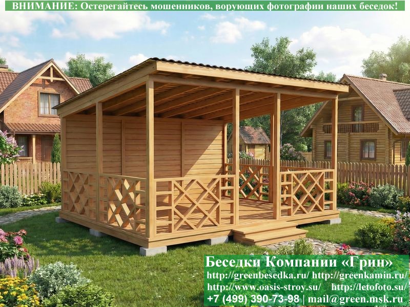 | На беседки предоставляется гарантия 1 год. Это полный сезон с большим перепадом температуры и различными погодными условиями. Гарантия распространяется на работы по установке беседок, веранд, бытовок, хозблоков и надежность конструкции. |