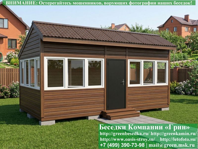 | На беседки предоставляется гарантия 1 год. Это полный сезон с большим перепадом температуры и различными погодными условиями. Гарантия распространяется на работы по установке беседок, веранд, бытовок, хозблоков и надежность конструкции. |