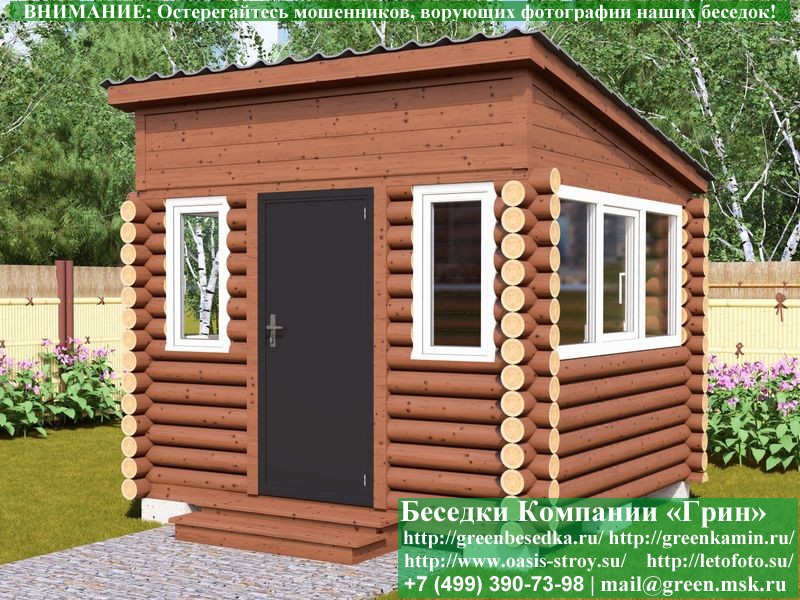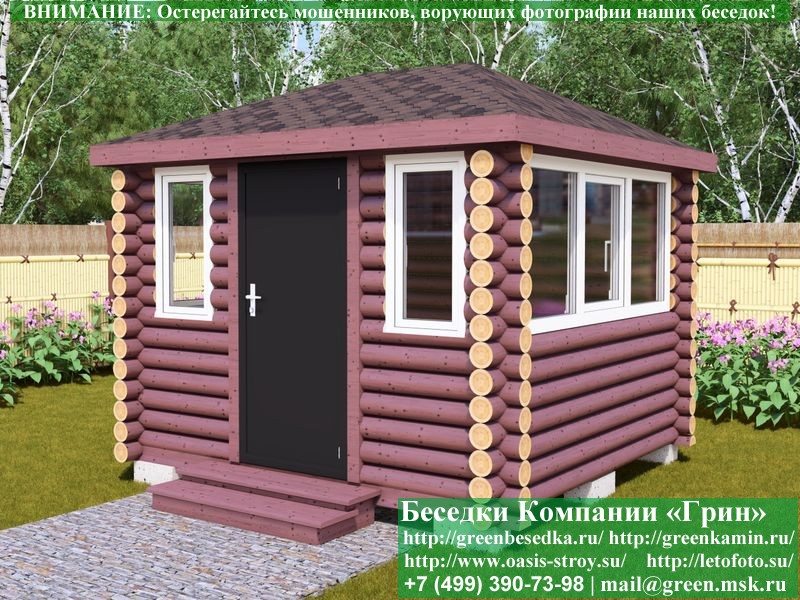 Застекленная Беседка Из Бревна С Пластиковыми Окнами 3х3