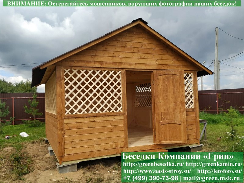Наши беседки, бытовки, хозблоки, веранды изготавливаются из сухого материала камерной сушки. Самая большая проблема деревянного материала естественной влажности это неконтролируемое высыхание. Строительство беседок из дерева естественной влажности похоже на лотерею. Дерево может высохнуть равномерно, образовав небольшую паутину щелей. Может рассохнуться огромными трещинами в труднодоступных местах. Были случаи выворачивания, выкручивания бруса 90х90 мм, которые никак нельзя исправить. Очень большую проблему представляет пол из влажной доски. При высыхании образуются дыры шириной в толстый палец. Беседки, бытовки, хозблоки, веранды из сухого дерева несколько дороже, но они того стоят. На сухом строительном материале тоже есть небольшие щели и трещины, это естественное поведение дерева, но их количество строго контролируется. Очень редко попадаются достаточно большие щели, но их наши установщики будут исправлять специальной шпатлевкой в цеху или по месту. Исправив существующее, новые уже не появятся. В дереве естественной влажности никогда не угадаешь, где появятся новые трещины и в каком количестве.